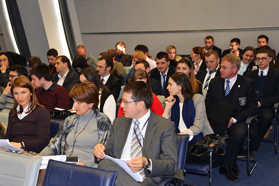 Students from the Faculty of Economy at the University of Tourism and Management in Skopje, according to collaboration program and awareness of scientific and professional level in the field of Banking and Monetary Economics at 12.19.2013 year, took part in the 11th session of the Council of researchers at the National Bank of Macedonia. Thematic content was directed to observations related for Fiscal and Monetary Policy Effects in South Eastern European Economies " presented by Goran Petrovski, Jane Bogoev, Dragan Tevdovski and "Increasing labour market activity of poor and female-Let's make work pay in Macedonia" presented by Nikica Mojsoska Blazhevski, Marjan Petrovski and Despina Petreska.