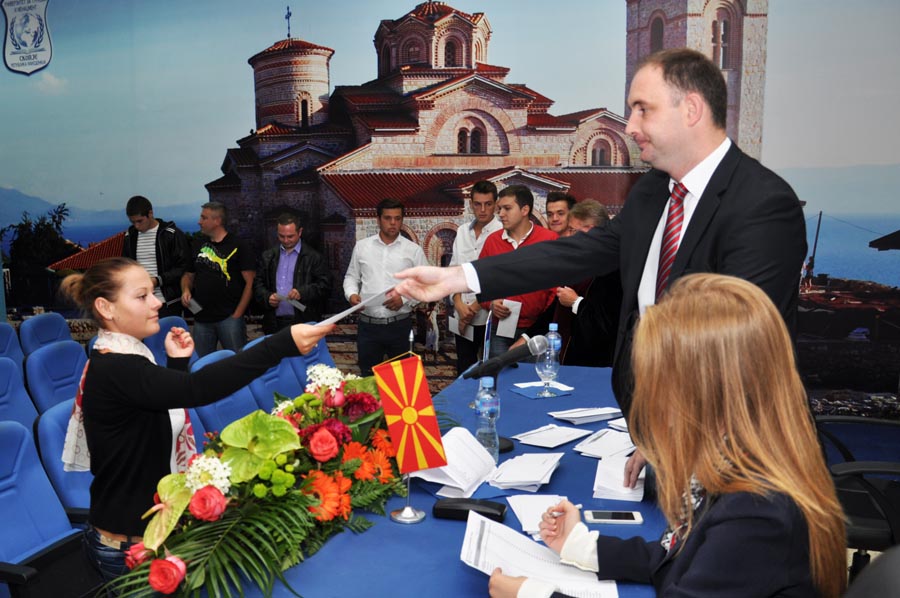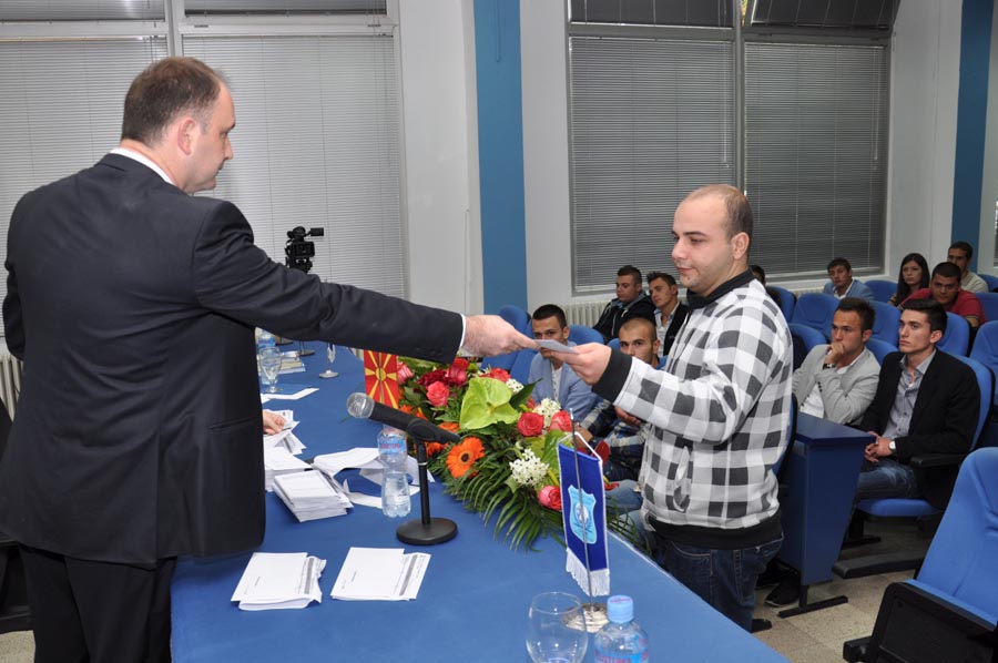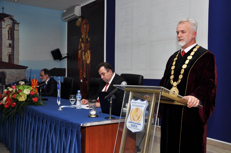In the crowded amphitheater at the University of Tourism and Management in Skopje, on the 16th of this month, the first academic class was held for the newly enrolled students of the University, officially marking the beginning of the academic 2013/14 year. Apart from the future academic citizens that have decided to continue their education on one of the seven faculties at the University of Tourism and Management in Skopje, on the ceremony attended prominent figures from the public and cultural life of the Republic of Macedonia. The students and the guests were welcomed by the Rector of the University of Tourism and Management in Skopje, prof. dr. Ace Milenkovski. He wished a warm welcome to the new students, as he said in the temple of knowledge, while the members of the Advisory Board, thanked them for their selfless efforts so far to improve the performance of the University of Tourism and Management in Skopje.