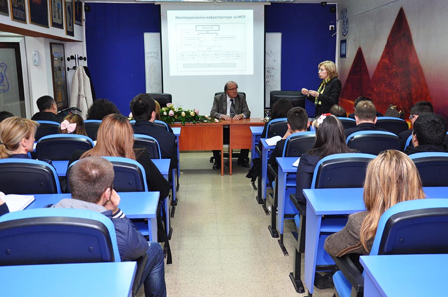 The opening remarks at this occasion were held by Prof. Ljubisa Nikolovski, PhD. The significant importance of this lecture, as he said, is the special contribution and information in this field especially on the students of the Faculty of entrepreneurial business, but also for all other students from the different faculties within the University.
