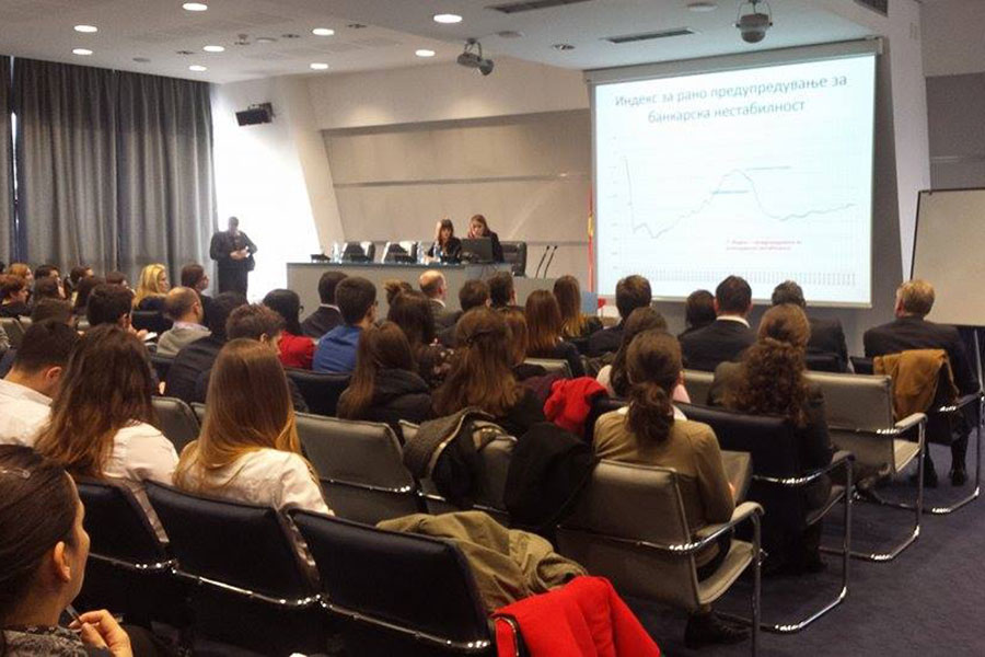 Студентите на Економскиот факултет на Универзитетот за туризам и менаџмент, заедно Деканот на факултетот и Проректор за наука и развој, Проф. д-р Сашо Кожухаров, на 11.12.2014 година учествуваа на Седницата на клубот на истражувачи на Народната банка на Македонија.