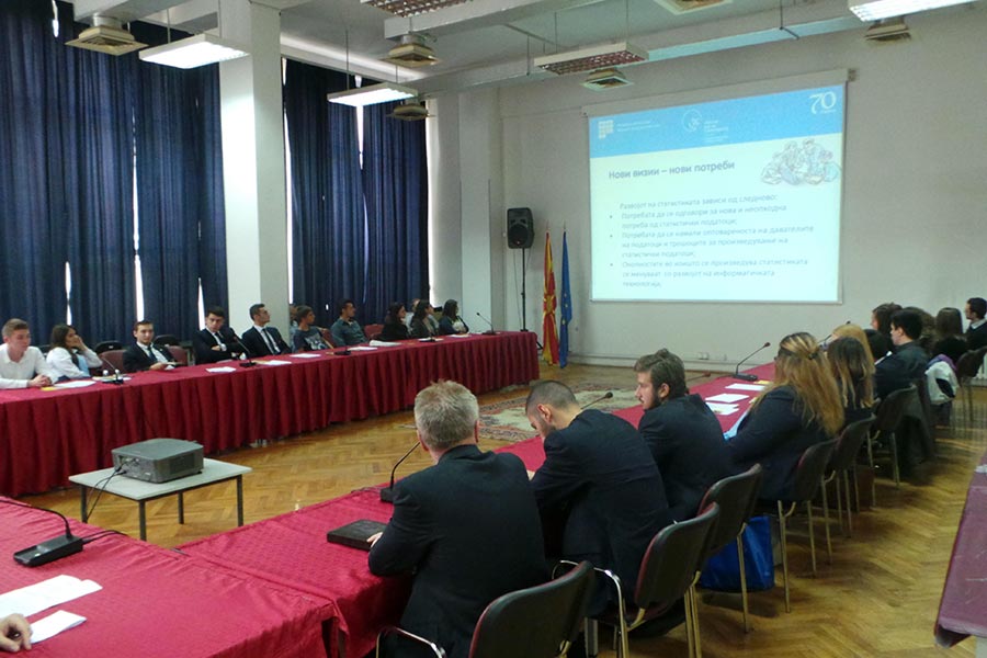 За Државниот завод за статистика зборуваше директорот на Државниот завод за статистика, додека за практиката низ страницата на Државниот завод за статистика на студентите им беше објаснато како можат да дојдат до податоци или публикации. Истовремено и како можат да ги применуваат истите во графикони.