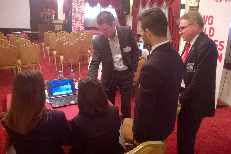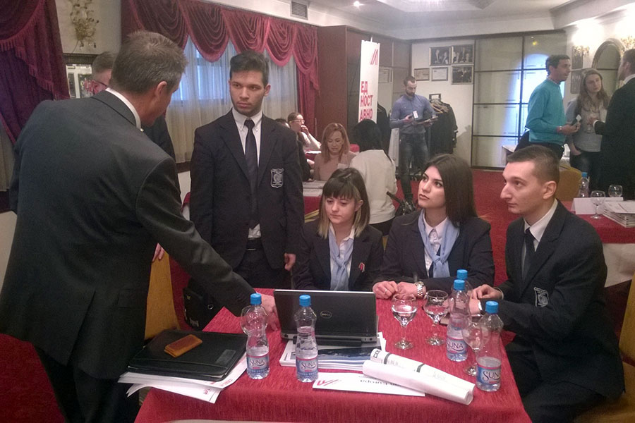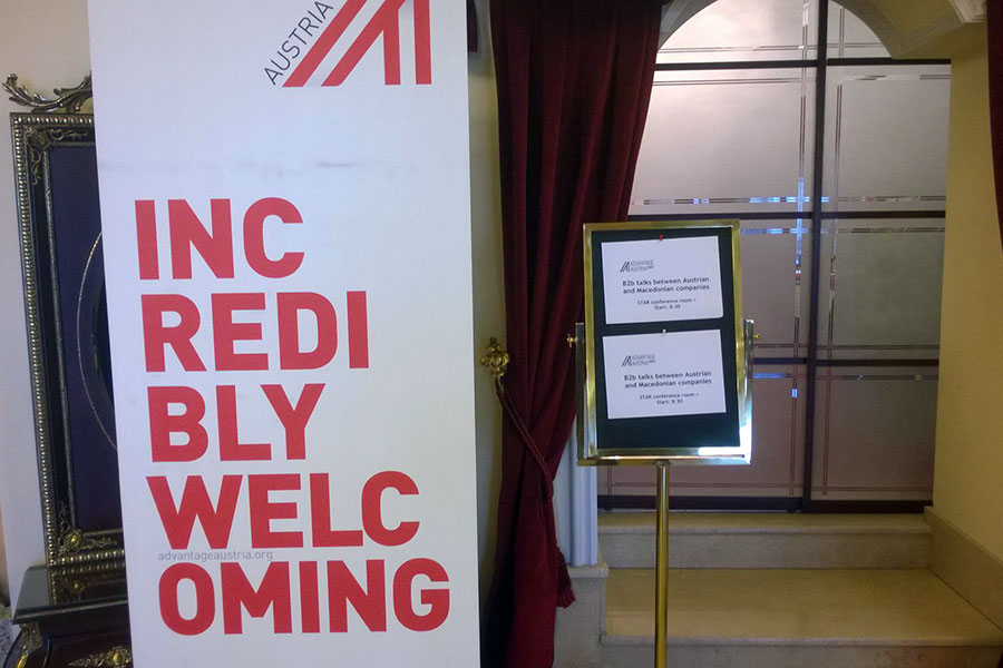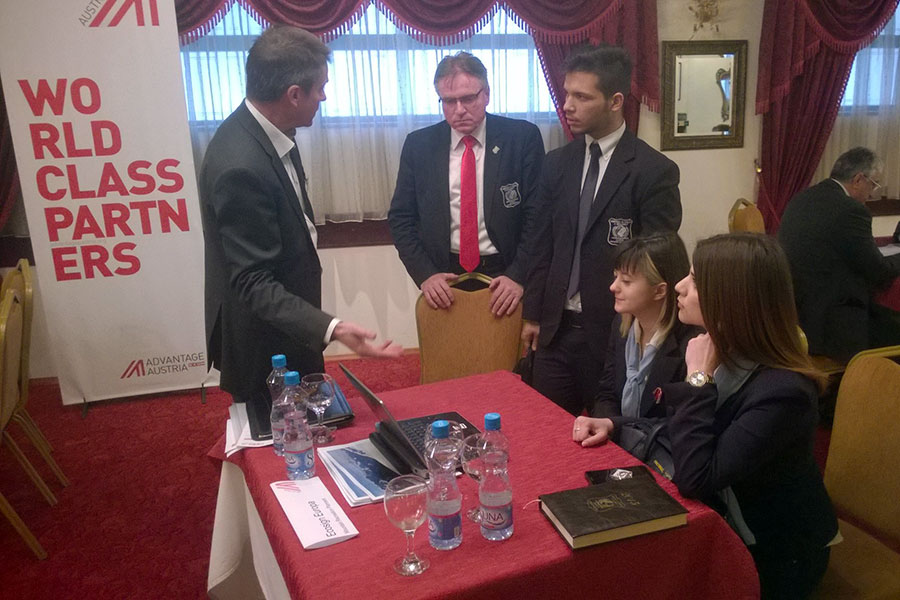 На 25.03.2015 година, група студенти од Економскиот Факултет и Факултетот за Менаџмент на Човечки Ресурси, заедно со професорот Сашо Кожухаров, присуствуваа на B2B средбите помеѓу австриските и македонските фирми, под покровителство на Австриската амбасада. На средбите организирани во хотелот Stone Bridge свое излагање имаше и претставникот на Ecosign Europa, Stefan Huter. Во презентацијата беа претставени бројните проекти за развој и промоција на планинскиот туризам ширум светот, а и во Македонија, со посебен осврт на Крушево, Попова Шапка и Галичица.