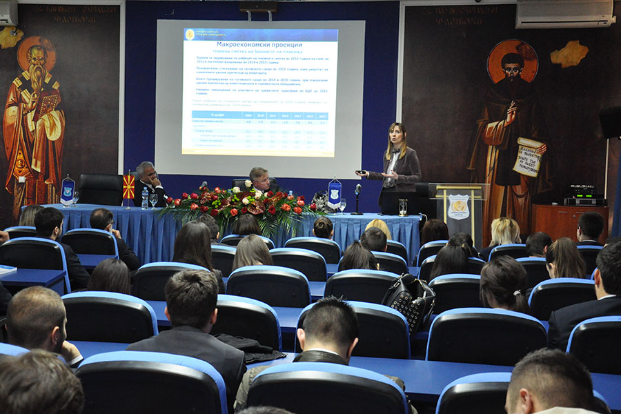 Во делот на планот на БДП, Вицегувернерката на Народната банка на Република Македонија го истакна умереното закрепнување на економијата во 2013 година и постепеното забрзување на растот во 2014 и 2015 година, како и побрзото затворање на негативниот производен јаз во првата половина на 2014, додека пак, на планот на тековната сметка, како особено важна ја посочи оценката за задржување на дефицитот на тековната сметка во 2013 година на ниво од 2012 и постепено влошување во 2014 и 2015 година. Секако, тука спаѓа и позначителното стеснување на трговското салдо во 2013 година како резултат на намалените увозни притисоци од енергијата, потоа благото проширување на трговското салдо во 2014 и 2015 година, при поизразени увозни притисоци од инвестициската и суровинската побарувачка и умереното намалување на учеството на приватните трансфери во БДП до 2015 година.