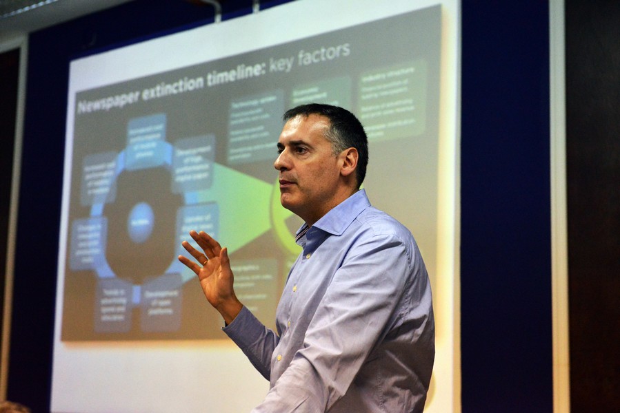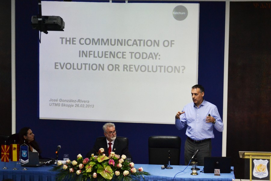 Во понатамошното излагање, г-ѓа Пердомо, се осврна врз проекциите на Светската туристичка организација за развој на туризмот до 2030 година, додека г-дин Ривера говореше за влијанието на комуникацијата денес, елаборирајќи го прашањето дали станува збор за еволуција или револуција. Тој исто така се осврна врз влијанието на дигитализацијата при комуницирањето, како и влијанието на социјалните мрежи во пренесувањето на пораките, со особен осврт врз улогата на медиумите и односите со јавноста денес.