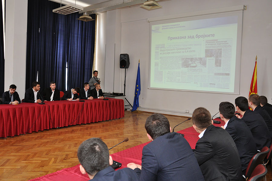 Студентите на Универзитетот за туризам и менаџмент од Скопје во взаемна заедничка координација, покрај презентацијата, имаа и ретка можност да ги тестираат и своите знаења од областа на туризмот, економијата, географијата и демографијата на on-line страницата на Заводот, односно преку Еуростат -Статистичкиот систем на Европската Унија.