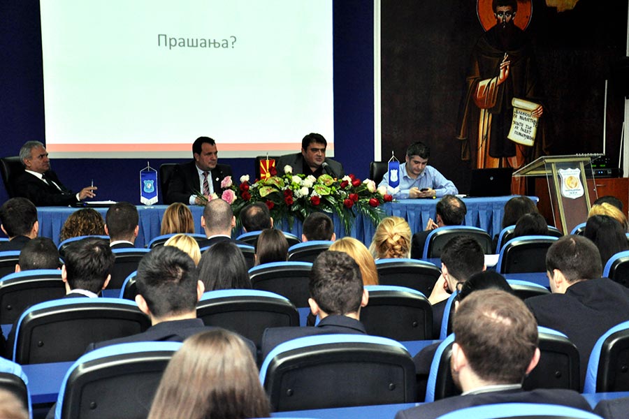 Своето обраќање кон студентите, пак, директорот на Агенцијата за електорнски комуникации (АЕК), Господинот Роберт Орданоски го започна со себе преставување како личност кој долги години извршуваше висока менаџерска функција во Т-мобиле, која како што рече била од особена важност во неговата изградба на менаџерската позиција пред се поради фактот што имал голема можност да работи со врвни експерти од областа на телекомуникациите од Германија, кои во тоа време менаџираа со Македонските телекомуникации. Ова искуство со нив, но и 13 годишното позиционирање на врвот на менаџментот на Т-мобиле, придонеле да го дефинира и зголеми својот капитал на знаење, што сега несебично го споделува со вработените во Агенцијата за електронски комуникации.