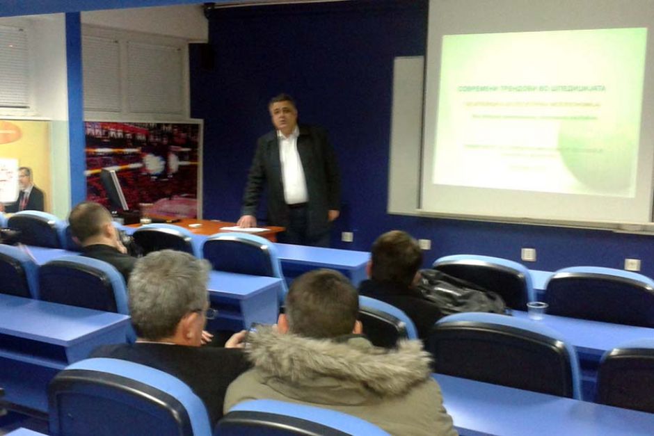 Членот на Советодавниот борд на Економскиот факултет на Универзитетот за туризам и менаџмент од Скопје, директорот на „Интер Европа логистик“ од Скопје, М-р Небојша Цветановски, во придружба на регионалниот менаџер на холдингот „Интер Европа Словенија“ за Источна и Југоисточна Европа, М-р Андреј Кариш од Република Словенија на ден 17.12.2013 година одржаа предавање пред постдипломците од Економскиот факултет на УТМС, на темата „Современи трендови во шпедицијата- од шпедиција до логистичка мезоекономија“.