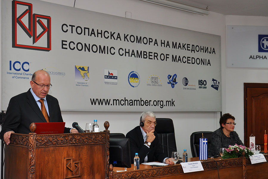 Делегација на Универзитетот за туризам и менаџмент од Скопје, денес во Стопанската комора на Македонија присуствуваше на заедничката средба што ја организираше Економско-трговското одделение при Канцеларијата за врски на Република Грција во Македонија во соработка со Комората. Средбата ја отворија претседателот на Стопанската комора на Република Македонија Бранко Азески и градоначалниците на Солун и Скопје, Јанис Бутарис и Коце Трајановски, кои во своите излагања ја потенцираа потребата од одржување на вакви средби, се со цел унапредување на билатералната соработка на македонските и грчките бизнисмени.